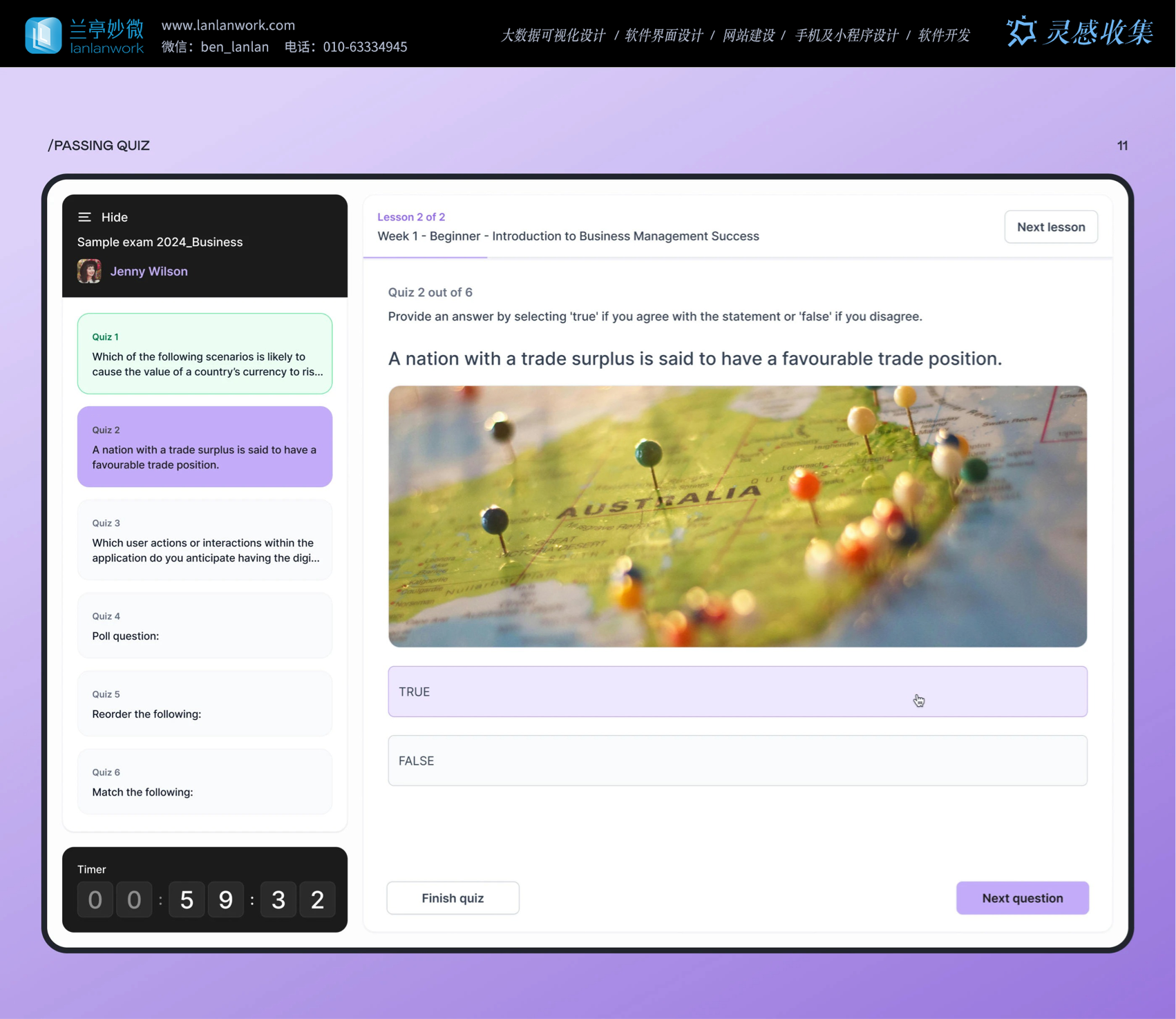 交互設(shè)計處處為用戶考慮。就說測驗功能,學(xué)生答題頁有 "Retakeequiz (重新測驗)""Next lesson (下一課)"