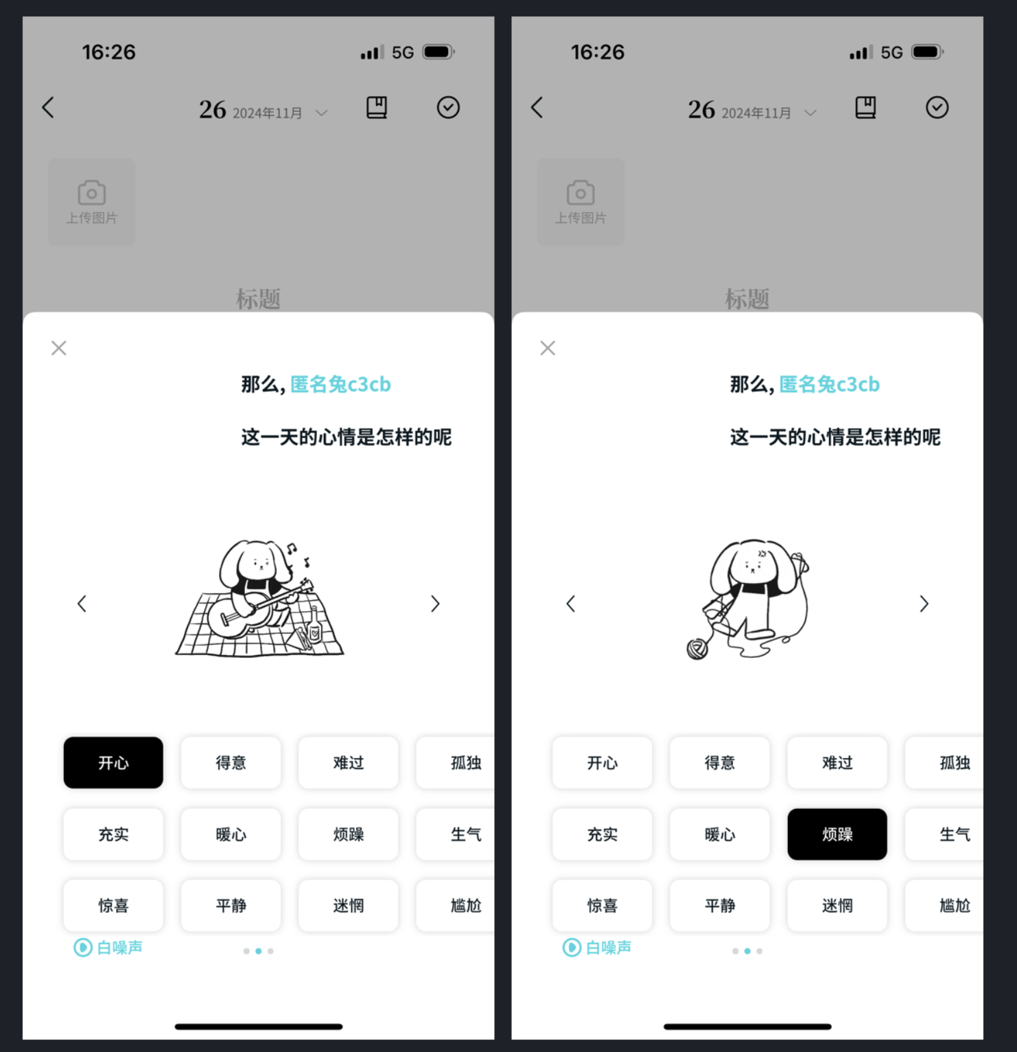 記日記時選 “心情標簽”,是很多人記錄生活的習慣,但常規(guī)設計要么是單調的文字(“開心”“難過”),要么是簡單的表情符號,總少點代入感。