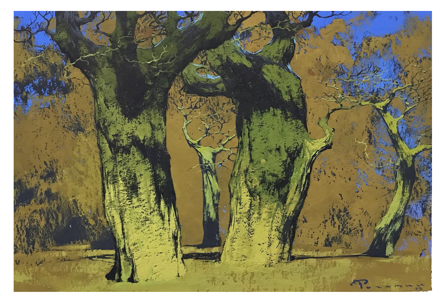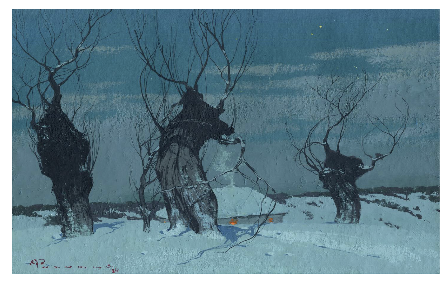 Artem Rohovyi 的創(chuàng)作核心,是對(duì)冬日枯樹的深度描摹。在他筆下,枯樹不再是生命凋零的象征,而是冬日浪漫的 “骨架”。