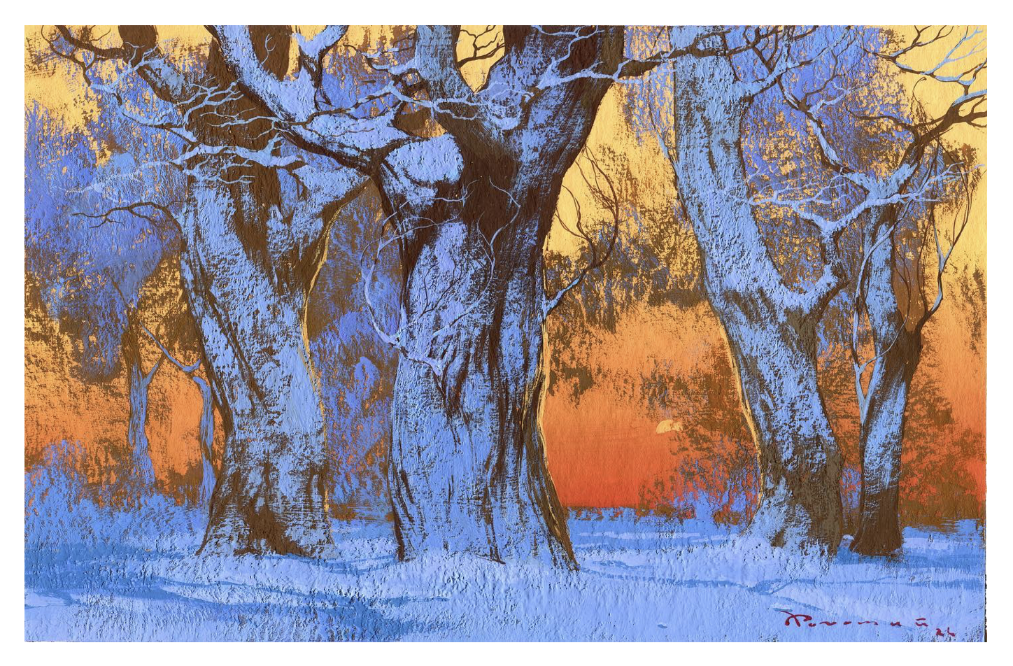 提起冬日,人們常聯(lián)想到蕭瑟與沉寂,但烏克蘭畫家 Artem Rohovyi 卻用畫筆顛覆了這份刻板印象。他癡迷于冬日枯樹的獨(dú)特張力,以變幻的天空、夢(mèng)幻的雪地、斑斕的光影為幕,將冬日的清冷轉(zhuǎn)化為直擊人心的浪漫,讓每一幅作品都自帶治愈的溫度。