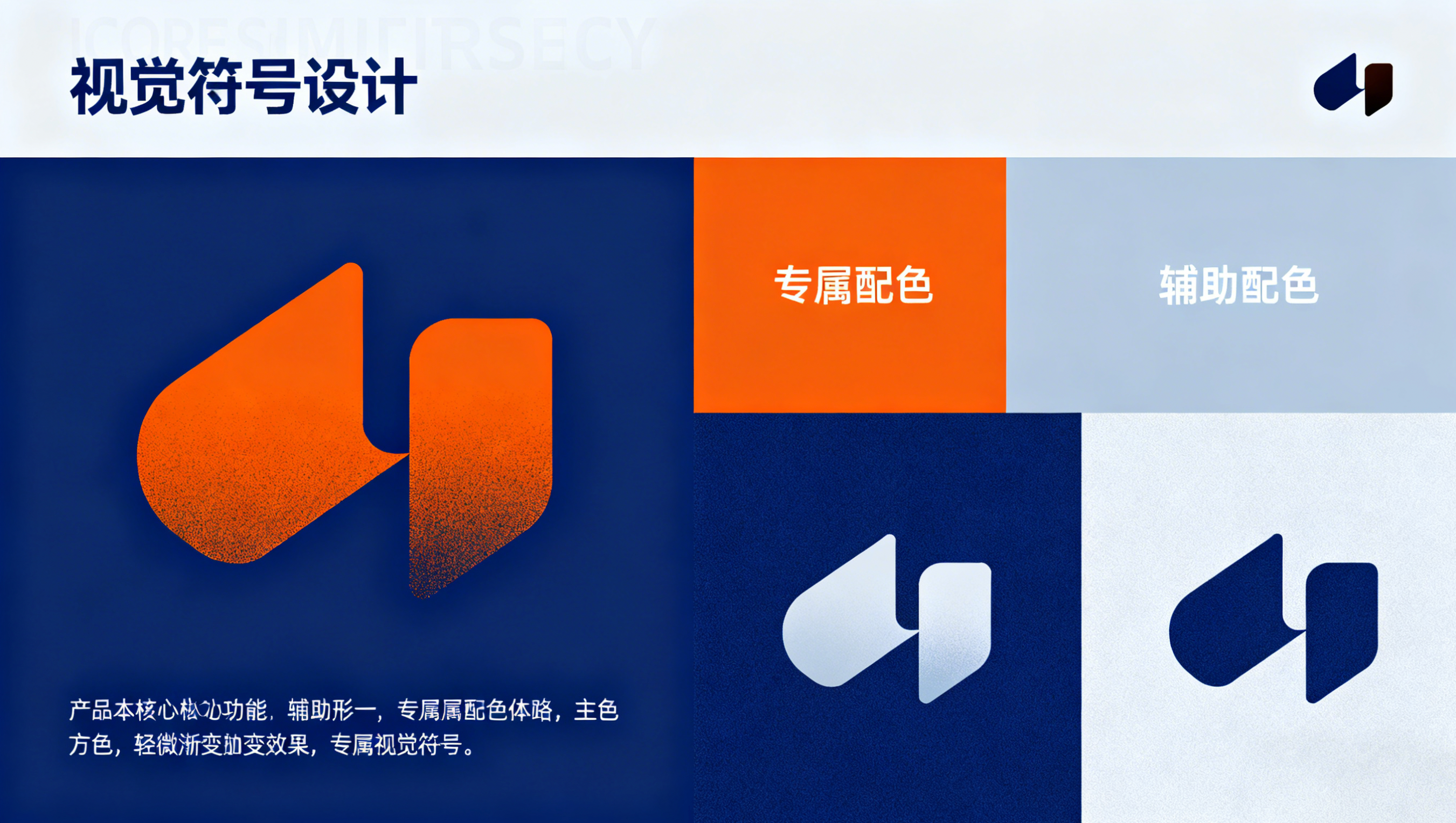 (注:圖中展示了將產(chǎn)品核心功能抽象為幾何圖形,通過色彩搭配和細節(jié)處理形成的專屬視覺符號)