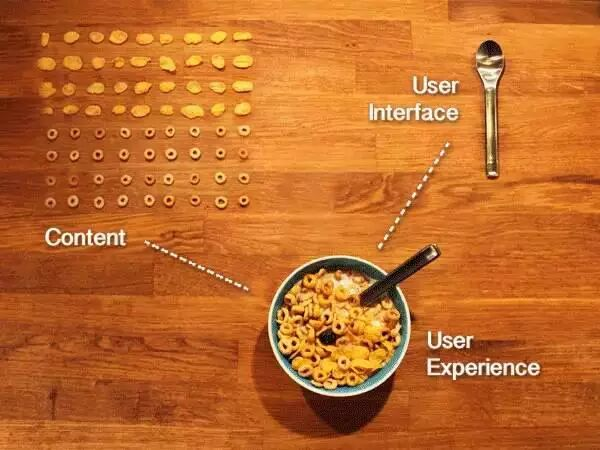 圖十:UI是用來取內(nèi)容的工具,使用者使用UI吃完?yáng)|西(內(nèi)容)的體驗(yàn)是UX。