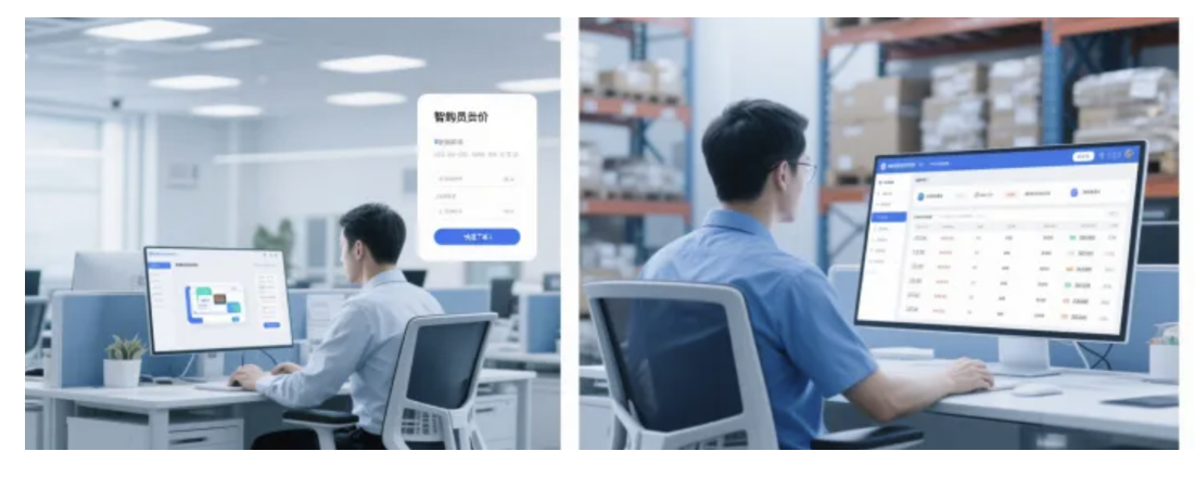 - 針對采購員:核心需求是比價、下單、跟進(jìn)采購進(jìn)度,設(shè)計重點為打造智能比價工具,自動整合供應(yīng)商報價信息,提供快速下單入口,同時實時展示采購單的審批、發(fā)貨、到貨狀態(tài),讓采購流程可視化。