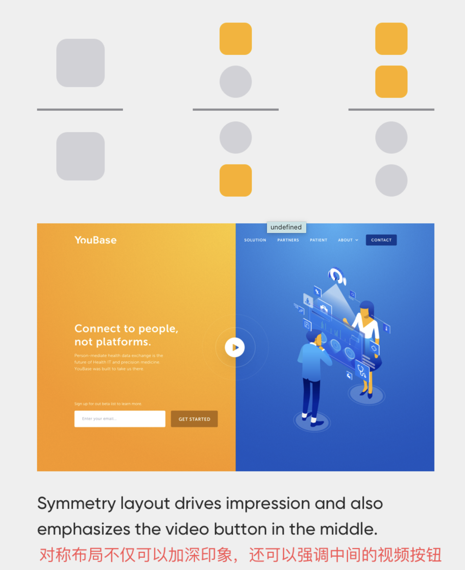 - 對稱律:對稱布局能帶來穩(wěn)定、秩序的視覺感受,是打造和諧界面的 “安全法則”。我們在 banner 設(shè)計、產(chǎn)品核心功能展示區(qū)常運(yùn)用對稱布局,同時通過突出 CTA 按鈕、差異化標(biāo)題打破單調(diào),既讓用戶感到舒適,又能引導(dǎo)核心操作。