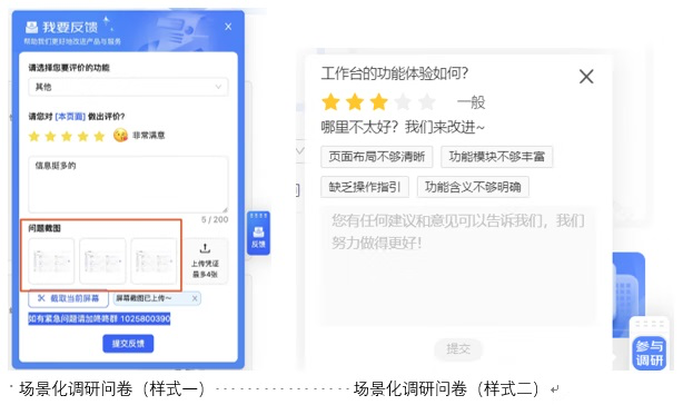 (3)灰度上線或全量上線后,我們通常會(huì)對(duì)上線后的新方案進(jìn)行對(duì)比性可用性測(cè)試,通過(guò)灰度方式在同一時(shí)間維度下比較新方案和原方案的可用性反饋和用戶滿意度,確保方案在全量上線之前修復(fù)任何潛在問(wèn)題。因此,在該階段我們以 A/B 測(cè)試+場(chǎng)景化調(diào)研問(wèn)卷(如下圖所示)為主,通過(guò)用戶體驗(yàn)數(shù)據(jù)和業(yè)務(wù)數(shù)據(jù)來(lái)評(píng)估出最優(yōu)版本。