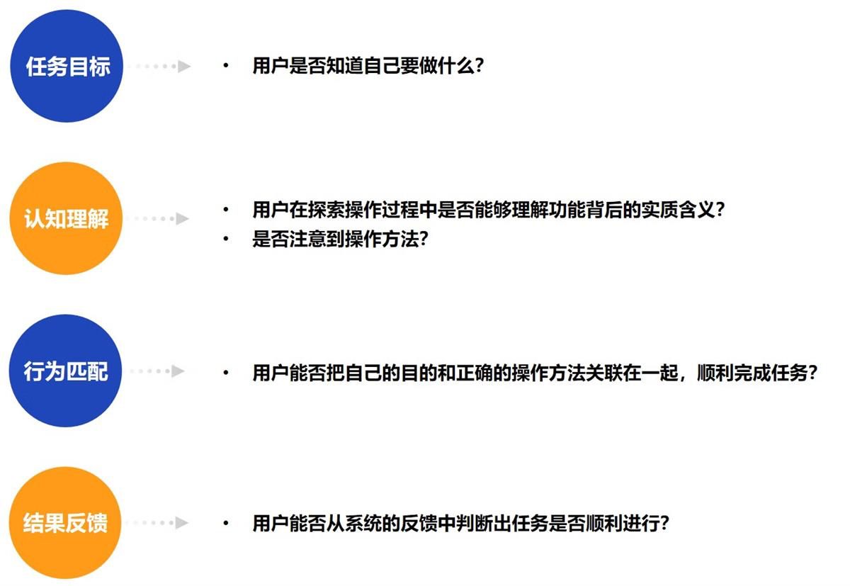 在觀察測(cè)試中,需要檢查用戶任務(wù)目標(biāo)和心理認(rèn)知是否可以順利執(zhí)行下一步操作,以此來(lái)發(fā)現(xiàn)可用性問(wèn)題,因此我們要對(duì)以下問(wèn)題做到心中有數(shù):