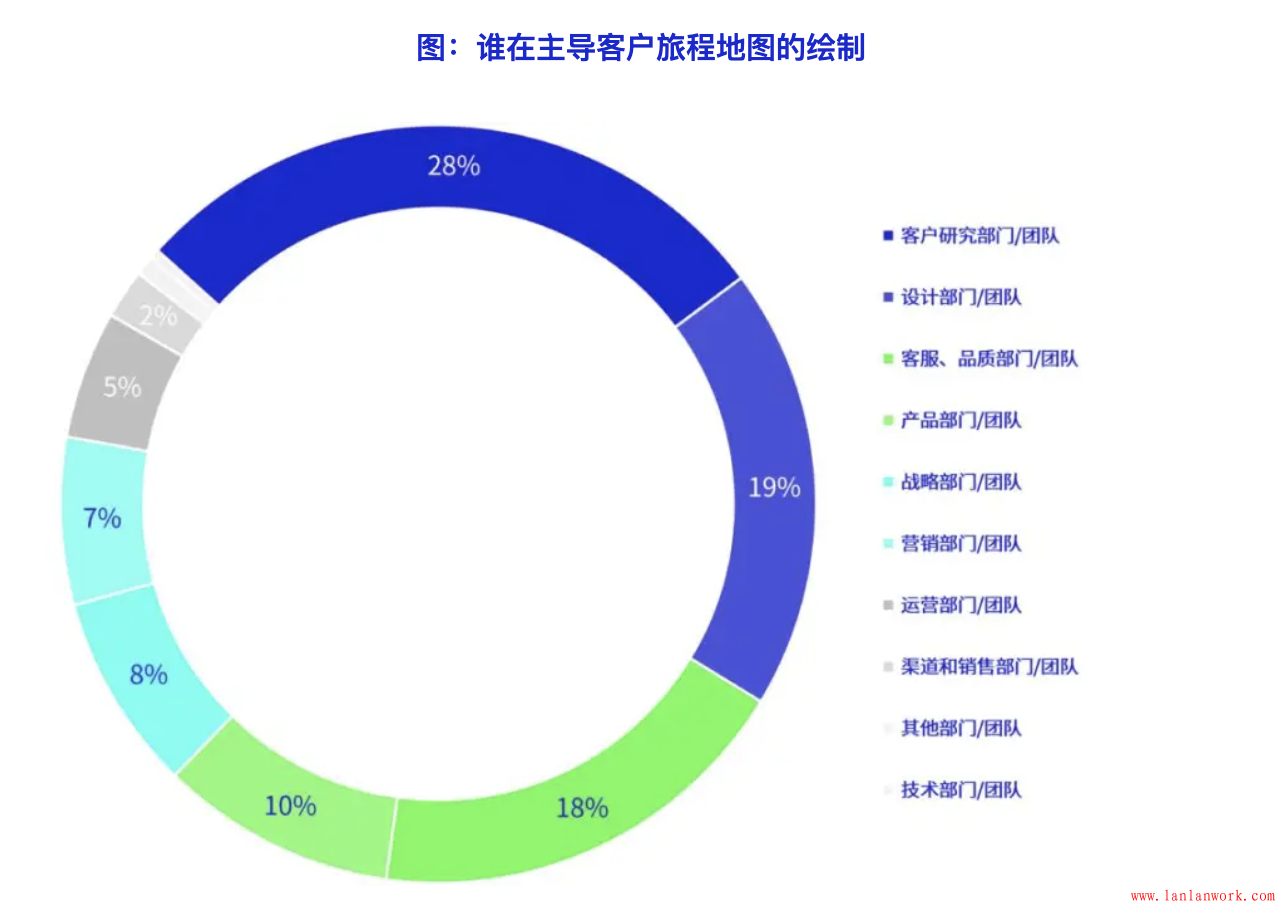 由客戶研究部門和團(tuán)隊主導(dǎo)客戶旅程的繪制時目前的最常見的模式,其次是設(shè)計部門,以及客服、品質(zhì)部門主導(dǎo)。但產(chǎn)品、戰(zhàn)略、營銷、銷售部門主導(dǎo)的情況也一定的比例,這也說明目前開展客戶旅程應(yīng)用的企業(yè),其目的存在多樣性。不同部門來主導(dǎo),其方法和應(yīng)用上也會存在差異。