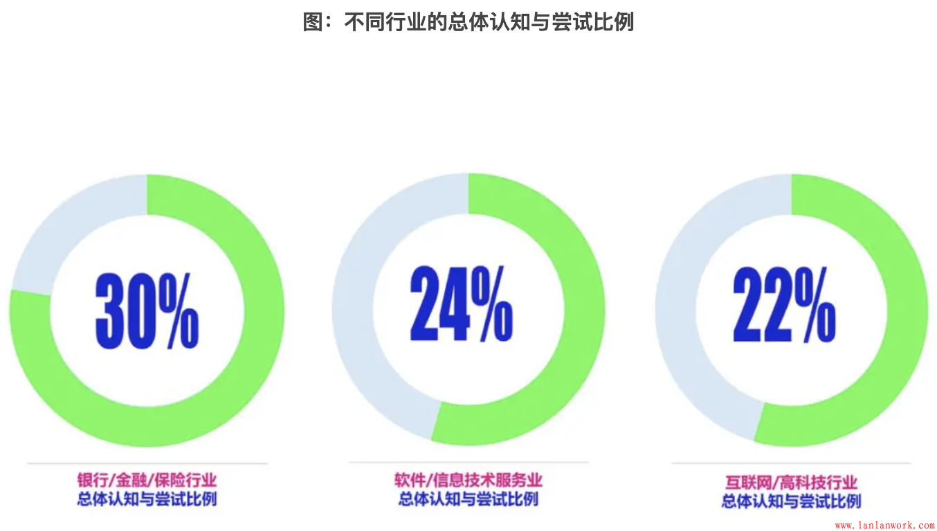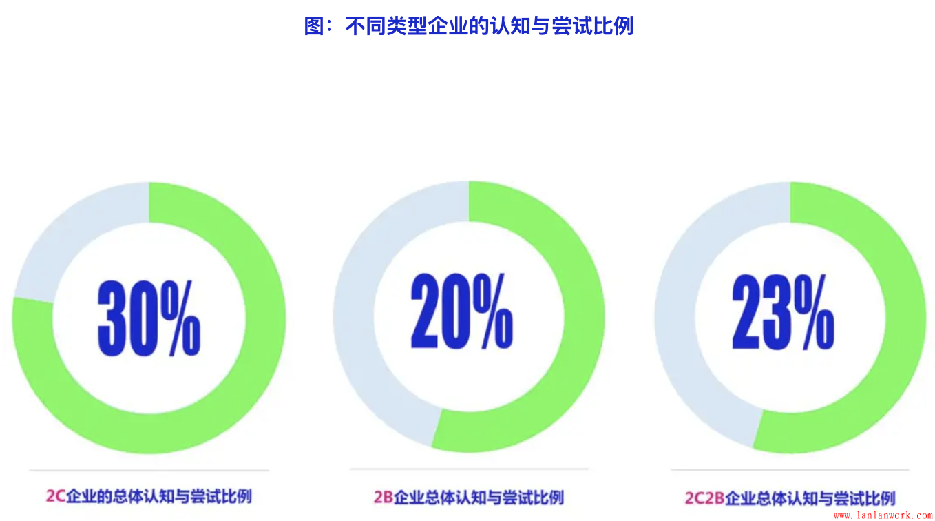 不同類型的企業(yè),在客戶旅程的認(rèn)知和應(yīng)用程度上也表現(xiàn)出較大差異:2C企業(yè)的應(yīng)用程度明顯高于2B類型的企業(yè),總體認(rèn)知和應(yīng)用比例分別為30%和20%。大型企業(yè)也明顯高出中小型企業(yè),分別為29%、22%和19%??蛻袈贸淌且粋€相對比較復(fù)雜的系統(tǒng)性方法,真正的應(yīng)用需要人員、資金等各項資源的投入,大型企業(yè)更具備優(yōu)勢。相比而言,小型企業(yè)的在。分行業(yè)來看,認(rèn)知和應(yīng)用程度最高是銀行/金融/保險行業(yè)(30%),一方面是由于這個行業(yè)的本身的客戶決策流程長、金額大、風(fēng)險大,另外一方面也是由于這個行業(yè)的利潤較高,企業(yè)有相對較為充足的資源進(jìn)行投入。