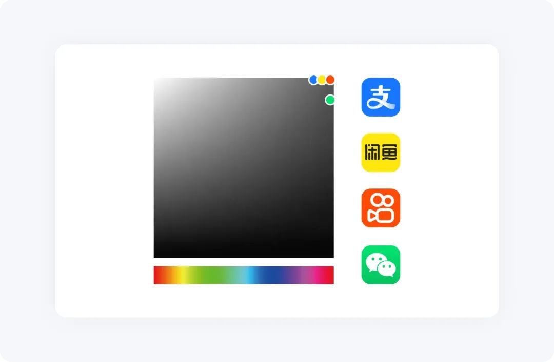 目前市面上那些成熟產(chǎn)品的配色,都會有這種規(guī)律,主色都基于拾色器右上角的位置。