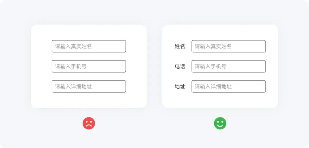 輸入框中的占位符可以為用戶提供初步的指引,幫助他們在開始輸入前有一個短期的記憶提示。理想情況下,占位符應作為標簽的補充。然而,如果只有占位符而沒有標簽,用戶可能會感到困惑,尤其是在他們點擊輸入框后占位符消失時,可能會一時記不起要輸入的內(nèi)容。