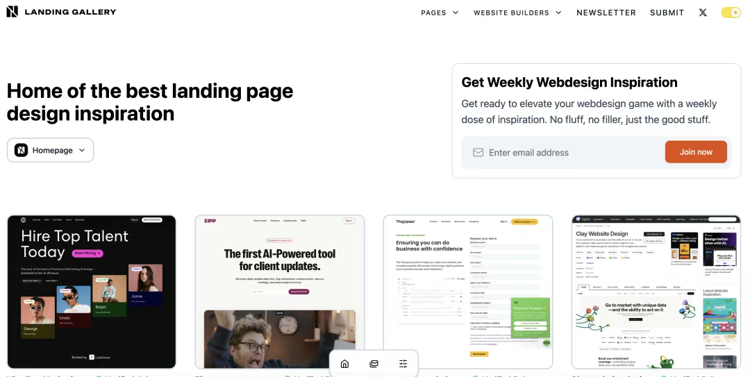 [Landing Gallery](http://landing.gallery) 專注于提供各個領域的著陸頁設計靈感。無論你需要設計什么類型的頁面,從主頁、定價頁面到聯(lián)系頁面,甚至是404錯誤頁面,這里都能找到優(yōu)質(zhì)的參考案例。