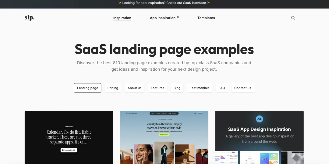 [SaaS Landing Page](http://saaslandingpage.com) 專門收集了SaaS(軟件即服務)公司的優(yōu)秀著陸頁設計。對于科技創(chuàng)業(yè)公司和SaaS產(chǎn)品設計師來說,這是一個寶貴的資源。
