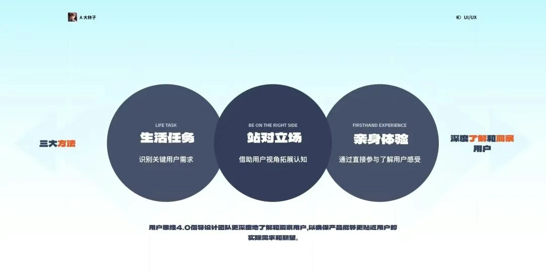 通過直接參與了解用戶感受 最直接的了解用戶的方式是親身體驗。通過設計團隊成員親自參與用戶使用產(chǎn)品的過程,能夠更深刻地感受用戶的需求和體驗。這一方法不僅提供了實際的用戶反饋,還能夠從設計者的角度直觀地感知用戶的情感和體驗,為產(chǎn)品的優(yōu)化提供實質(zhì)性的依據(jù)。 通過這三大方法,用戶思維4.0倡導設計團隊更深度地了解和洞察用戶,以確保產(chǎn)品能夠更貼近用戶的實際需求和期望。