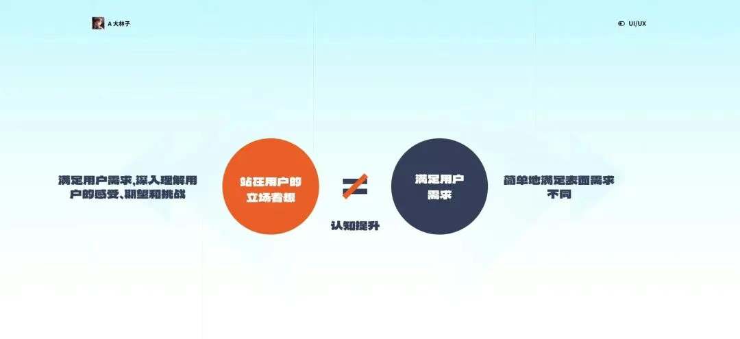 3. 明確3:要「站在用戶的立場著想」,而不是「滿足用戶需求」 這一認知挑戰(zhàn)了以往滿足用戶需求的思維模式。不僅要了解用戶的需求,更要站在用戶的視角,深入理解他們的痛點和欲望。通過這種方式,設計可以更好地貼合用戶的實際體驗,而不僅僅是單純地提供功能。