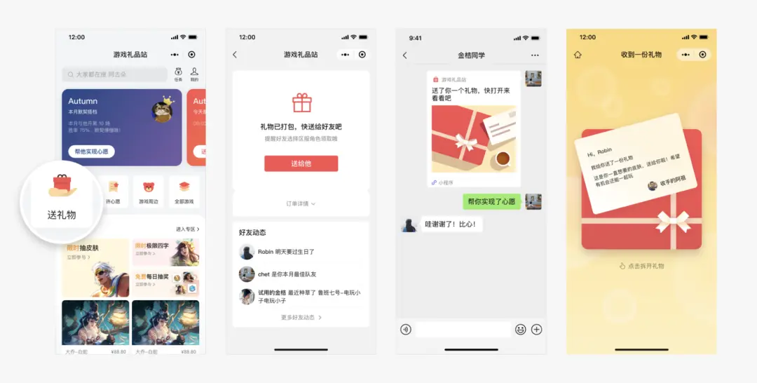 第二個案例,來自微信游戲禮品站的設(shè)計。游戲禮品站是支持玩家間互贈游戲道具、周邊的小程序,在設(shè)計過程中,產(chǎn)品經(jīng)理常提出一個核心需求:“這個頁面能不能更有氛圍感?”