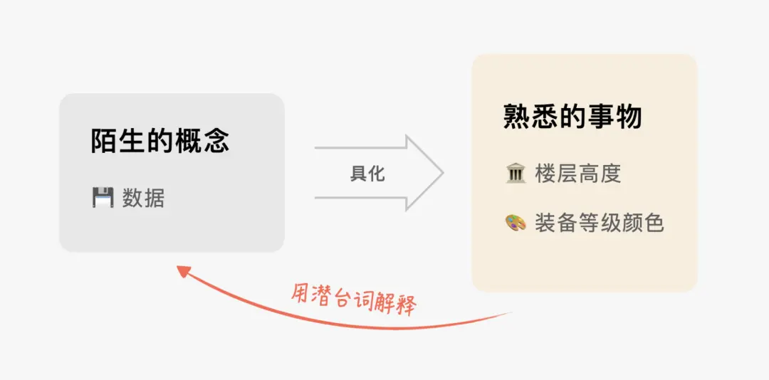 從潛臺詞的角度思考,破解這一問題的關(guān)鍵,是用用戶熟悉的事物,具象化陌生的抽象數(shù)據(jù)—— 通過視覺潛臺詞,將游戲數(shù)據(jù)與用戶熟知的概念關(guān)聯(lián),用熟悉事物的潛臺詞解釋陌生數(shù)據(jù),降低用戶的認(rèn)知成本,讓數(shù)據(jù)變得生動、有畫面感。