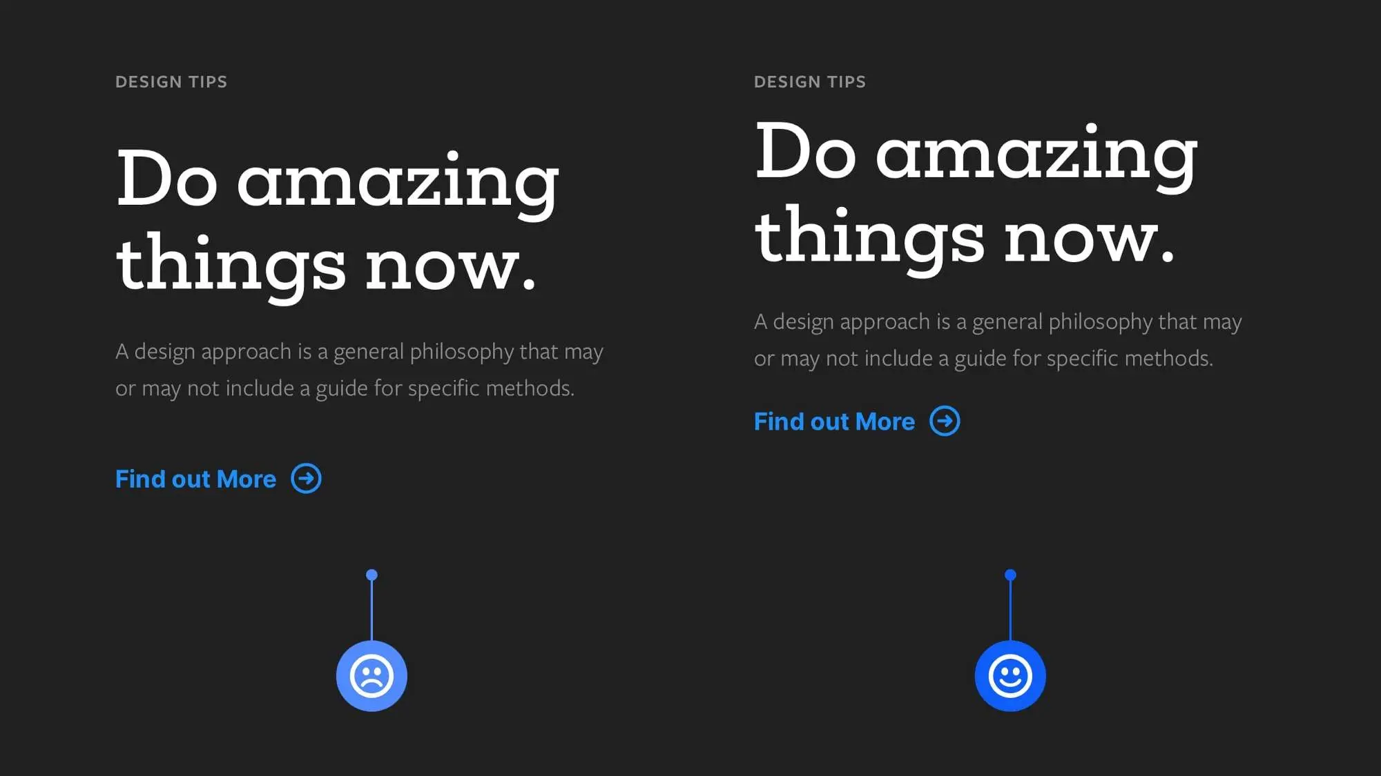 ▲左圖設(shè)計(jì)師職位信息為白色文字降低不透明度,右圖為和背景同色相高明度的顏色