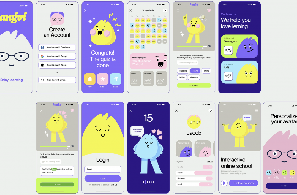角度漸變通常有對(duì)角漸變和多角度漸變;有角度的漸變相比水平和垂直漸變,它的使用場(chǎng)景更廣,如圖標(biāo)背板、啟動(dòng)頁(yè)、注冊(cè)登錄頁(yè)、標(biāo)簽等;想讓界面更加絢麗、動(dòng)感和迷人,這時(shí)候我們可以考慮多組漸變搭配使用。